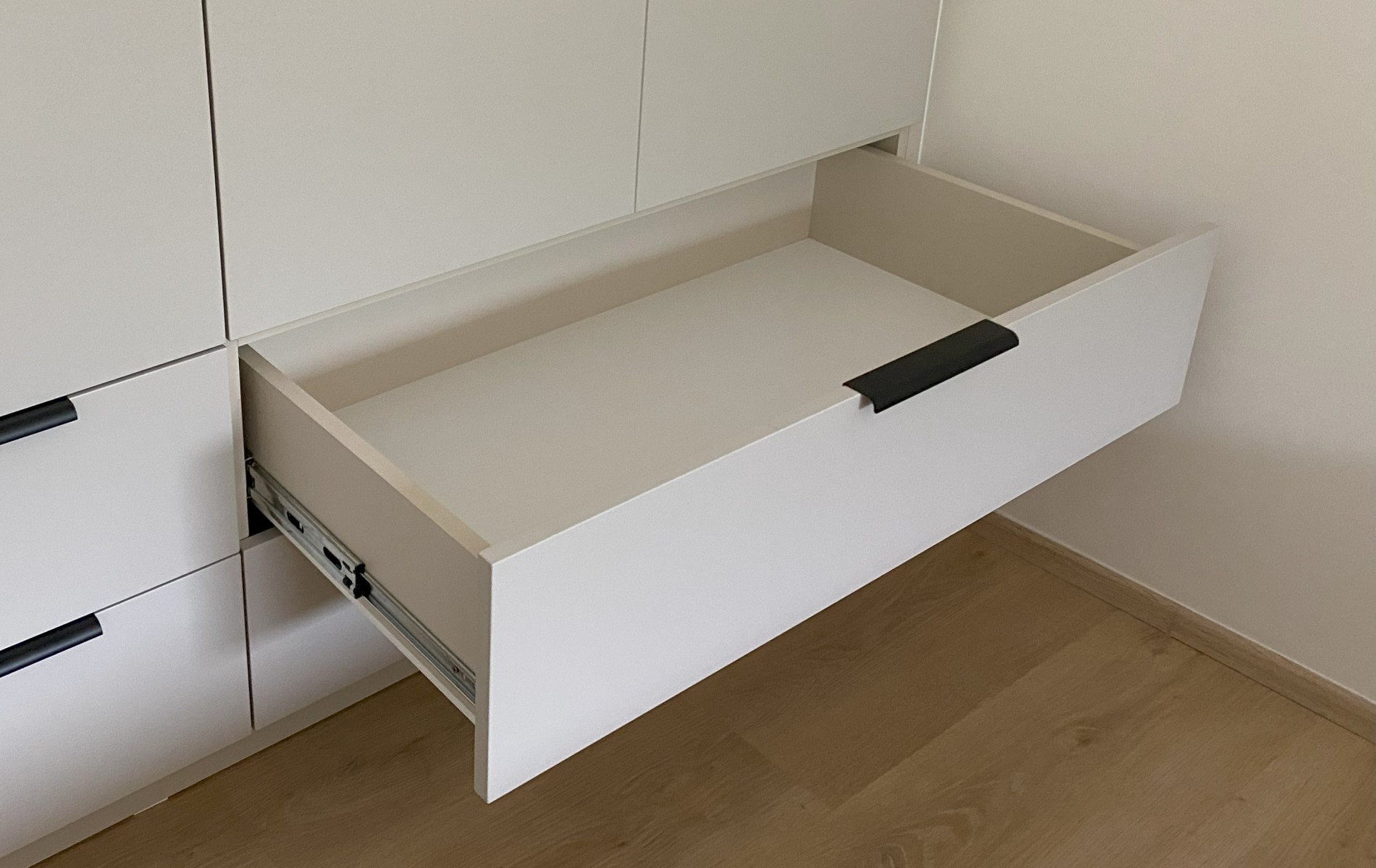 Spodní část skříní tvoří zásuvky - ideální pro přehledné ukládání menších kousků oblečení. Plnovýsuv s tlumením zaručuje tiché, plynulé a jemné zavírání zásuvek bez bouchnutí.