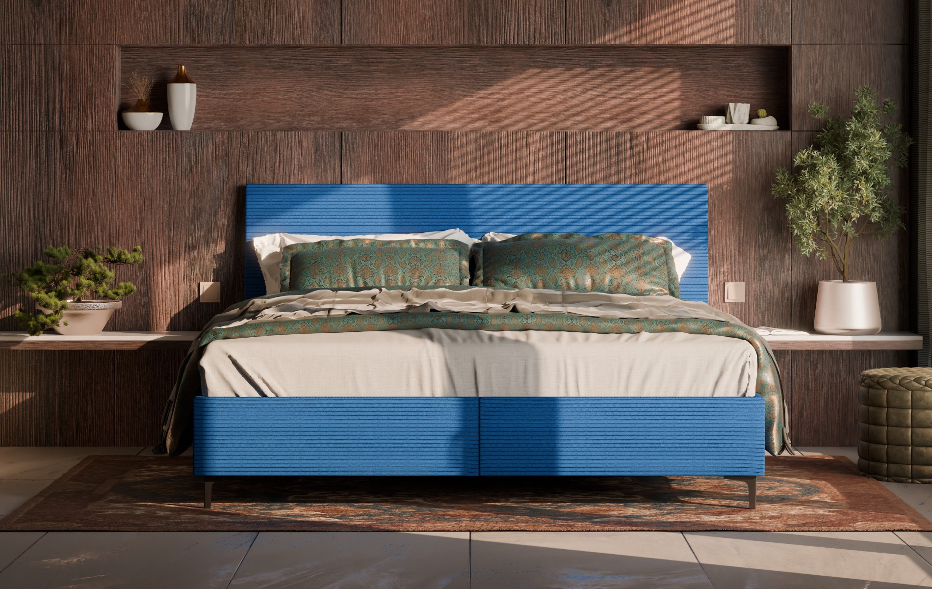 Čalouněné čelo, potahovou látku a nožičky si vyberete dle svého vkusu či designu Vaší ložnice. |